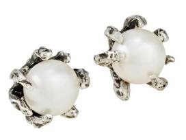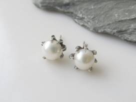 Freshwater Cultured White Pearls with Sterling Silver Stingray Claw Setting.