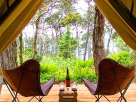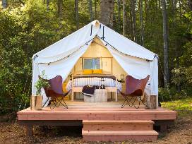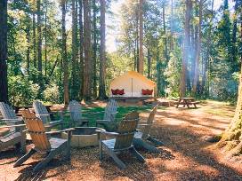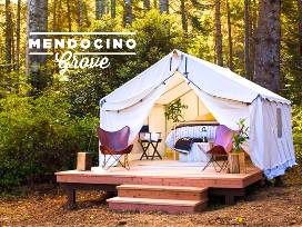 Mendocino Grove is a luxury camping experience on Northern California's Mendocino Coast, a picturesque destination with stunning ocean vistas, and gorgeous beaches and rivers. Enjoy all the romance of camping without the hassle of tent wrangling and gear.