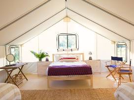 Guests will enjoy a tranquil and authentic camping experience with comfortable sleeping arrangements and an array of deluxe amenities including spacious tents, heated beds, down comforters, crisp cotton linens, bedside lamps with charging ports, hot showers, and much more.