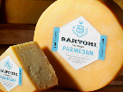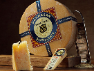 Wood box with assorted Sartori cheeses and a bottle of wine. DONATED BY: Sartori Company
