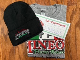 After the movie, stroll up the street to grab a pie or two or three with a $50 gift certificate to Mineo's Pizza. You can even sport your new Mineo's t-shirt and winter beanie while you dine!
