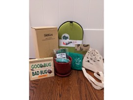 Get your spring garden going with a basket of gardening inspired items including a t-shirt, tote, sticker, and gardening journal from Grow Pittsburgh, a $50 Gift Certificate to Shadyside Nursery, professional garden tool set, luxury kneeler, Good Bugs, Bad Bugs Book, bamboo gardening gloves, Avoseedo, and a decorative ceramic flower pot.