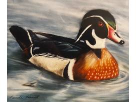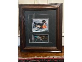 Linda Hurst framed print of wood duck in profile with duck feathers