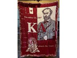 Measuring approximately 68" x 48", this custom-made wool afghan features the KA Flag, KA Coat of Arms and a depiction of Robert E. Lee. It also shows KA's motto "Dieu et les Dames" and lists values that all KA's should aspire to.