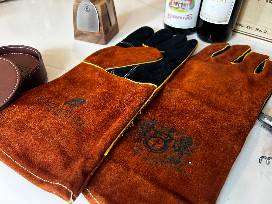 Sleek and portable-ideal for your favorite spirits on the go. - 1 Pair of Heat-Resistant Leather Suede BBQ Grilling Gloves