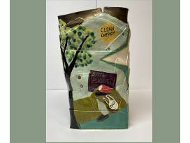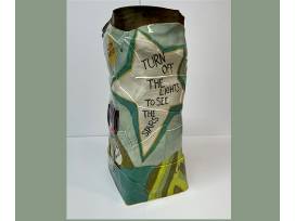 This one of a kind work of art, entitled "Cool It, Baby!", was crafted by Lois Vitt Sale, Trustee of The Conservation Foundation, and is etched with images and slogans often associated with Earth Day, such as "Hug a Tree," "Plant a Garden," and "Turn Off the Lights To See The Stars." Made of a white stoneware clay and fired to 2172 degrees F, the vessel stands 17" tall. Sixteen different glazes were used to create the images on its surface. There's not another vase in the world like this one!