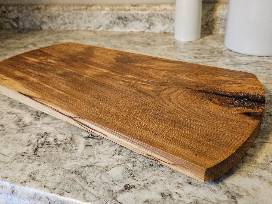 Hand crafted live-edge 20-inch Spauld Red Elm charcuterie board. Serving in style!