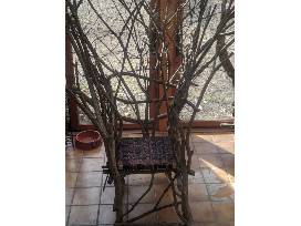 While restoring their oak and hickory woods in Winfield, Ron & Mary Ann Barzso focused on eliminating invasive understory trees and shrubs like Buckthorn, Asian Honeysuckle and Burning Bush (Winged Euonymous). This wing back chair, made from Burning Bush features a collection of fine braided leather belts from resale shops. Want your belt back that someone at your house donated to Goodwill? Bid on this chair!!! Perfect use for an invasive species. And it's not just for decoration - You can actually sit on it!