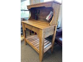 Rustic yet refined, this potting bench handcrafted of reclaimed barnwood is almost too pretty to use! Measuring 34" work surface height, 50" to the top shelf, 21" deep and 36" wide, it features a bottom slatted storage shelf, standing height work surface with hooks above it, and a top shelf. If you just can't bear to get it dirty, it would add the perfect rustic yet stylish touch as an entryway table, dining room sideboard, or even as a unique workstation. Handmade by volunteer Dickson-Murst Farm Partner Jim Cumpata.