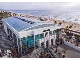 The pool was converted to fresh water in 1940, when it then became the largest heated pool in Southern California. Newly renovated, the aesthetics reflect floor to ceiling windows and a retractable roof, allowing swimmers to enjoy the warm San Diego weather all year long.