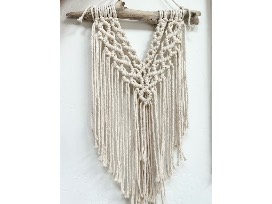 Macrame wall hanging art by Salty Knots by Krissy. Find artist at the festival at booth 413 and https://saltyknotsmacrame.com.