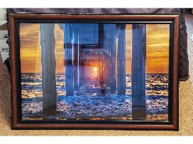 24"x36" metallic paper print of "Corridor to the Sun" in a cherry wood frame by artist Evgeny Yorobe Photography. Find artist at the festival at booth 309/310 and https://www.sandiego-landscapes.com.