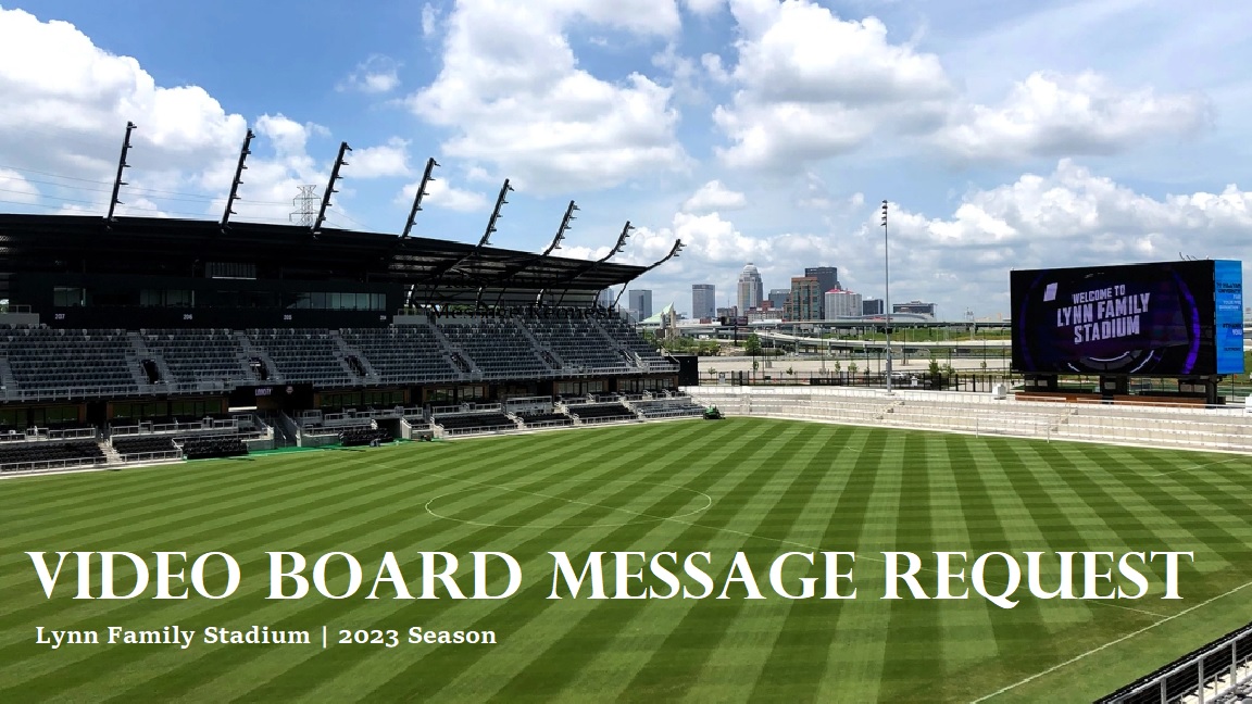 - LouCity or Racing Match Day Video Board Message - The name of an individual or company appear on the video board at halftime and on a rotational graphic throughout the match ($15 donation required*). Available for LouCity and Racing home matches only.