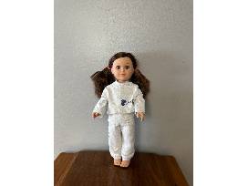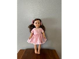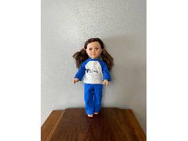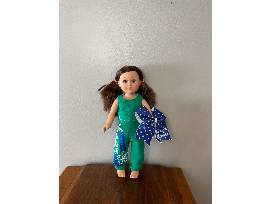Harper is ready for Bishop OGorman Cheer camp. She has other great outfits including a first communion dress! All of the outfits are handmade and will also fit an American girl doll. They are sturdy outfits, perfect for child play. Nine outfits and doll are included.