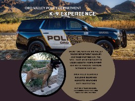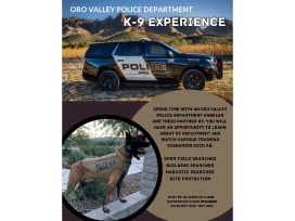 Spend time with an Oro Valley Police Department handler and their partner K-9. You will have an opportunity to learn about K-9 deployment and watch various training scenarios such as: