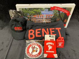 Enjoy a variety of Benet Academy spirit wear which includes "Benet-opoly," baseball hat, hooded sweatshirt, t-shirt, stainless steel water bottle, koozie, cowbell, car decal, linen bag