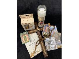 The wooden Crucifix, Holy candle and St. Joan of Arc statue will be special additions to your home's prayer space.