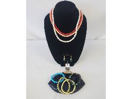 Get some new, colorful Lee Sands fashion jewelry to accent all your casual and formal wear along with a Lee Sands black eel skin kiss lock coin purse clutch. Necklaces have lobster clasp closure. Includes: