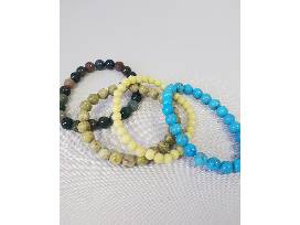 - Four (4) elastic pearl-like bracelets in pale yellow, sage green, tourquoise blue, and multi sage