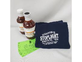 Stop in at the iconic Gordon's Stoplight Drive-in, home of the "Quadzilla Meal," with these $25 in gift certificates, two (2) Gordon's logo t-shirts, XL, and two (2) bottles of Gordon's Original Bar-B-Que Sauce.