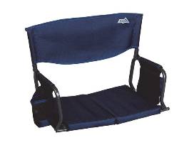 Take lightweight, foldable seating with you to your next sporting event with these two (2) navy folding stadium seats. Each has a wide angled backrest to provide firm and comfortable back support, plus a beverage holder and storage pockets. The padded seat maximizes comfort for up to 225 pounds. Carry your padded stadium seat using the convenient shoulder strap and set it up in seconds with the buckle that fastens to stadium benches for stability.