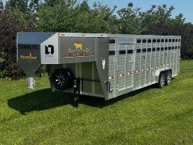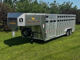 Haul in style and strength with this premium 25' x 90" Duralite Dakota Klassic aluminum livestock trailer, designed for durability, safety, and performance. Spacious 25-foot length with a 90" width - built for serious hauling capacity. A 48" side access door for convenient loading and unloading. Slatted center gates for flexible livestock management. Sheeted sliding tailgate ensures secure transport and easy operation.