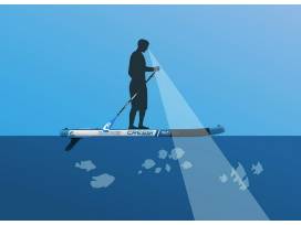 The Cressi Reef Inflatable All Round Stand-Up Paddleboard Set gives you a larger window to look beyond the full snorkeling experience from above the surface. The large 34" fish shape coupled with the pre-laminated material have enabled an elongated window that extends from the paddling position to the bow, and thanks to the sturdy layer of Crystal Clear PVC, Reef's window offers an exceptional view of the seabed during your outing. The high-buoyancy, curved bow and generous 9" drift give the board great stability, to let you comfortably admire the sea wherever you go.