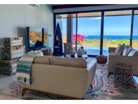 This newly built property includes a fully stocked gourmet kitchen with top-of-the-line appliances and a view of the ocean. The living room and dining area have an open floor plan and floor to ceiling windows, so you won't have to miss the sunset from anywhere!