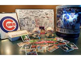 Die-hard fans of a certain era will love this collection of Wrigleyville nostalgia, ideal for a man cave or home office -- or maybe a lucky young fan's bedroom! Highlights include Ernie Banks and Billy Williams autographed baseballs, a limited-edition Wrigley Field paperweight (still in the box!), and a framed Pat Hughes-signed scoresheet from Game 7 of the 2016 World Series. Vintage baseball cards and other treasures, too!