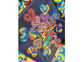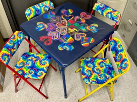Kid's table with handpainted heart mural made by the students in 1Felten.