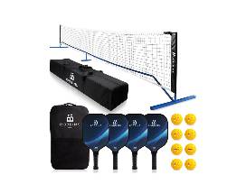 - Portable Pickleball Set: 4 USAPA Approved Graphite Paddles, Duffle Bag, Regulation Size Pickleball Net System, 8 Outdoor Pickleball Balls and Carry Bag, and court marker set.