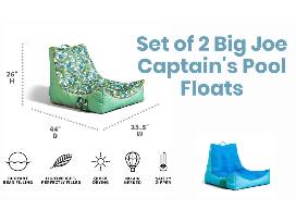 - 2 Big Joe's Captain's pool floats with quick-drying mesh fabric and lightweight filling - no inflation needed! 44 x 35.5 x 5 inches each.