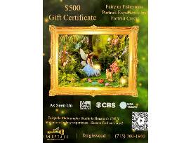 $500 Gift Certificate for Fairy or Fisherman fully immersive Portrait Experience and 10-inch art portrait at Fairytale Photography Studio, 1717 St. James Place.