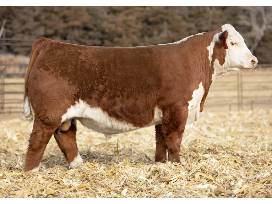 18038 is one of the true, spread females in the industry. She screams power cow. She has flawless udder development with impeccable teat placement and structure. She is thick and stout all the while being incredibly smooth made and sound. She sports one of the best sets of numbers you can draw up and is outcross to most of the Horned Hereford population. She has excelled in production and we can't wait to see what this cross will do. Thomas County was the $150,000 top seller from Hoffman and is one of the most unique bulls to come around in some time. He offers an elite spread on paper, Homo Polled and a rare phenotype with abundant shape and substance. These cattle will be outcross to the mainstream and are sure to create a buzz in the business.