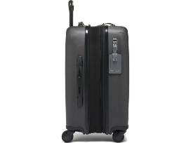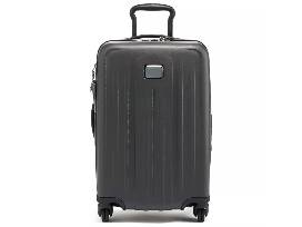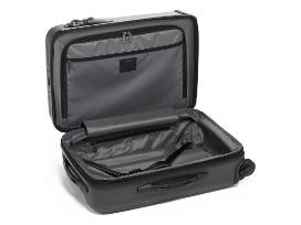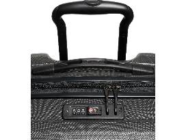 This Tumi V4 International offers the ultimate in lightweight ease and maneuverability. The two-way zip-around closure features a low-profile, integrated TSA-approved lock with a three-digit combination dial for extra security. Expandable, swiveling, easy-to-maneuver wheels and a telescoping-handle system complete the virtually damage-proof design. Top and side carry handles; three-stage telescoping pull handle. Polycarbonate with leather trim, imported. Space grey