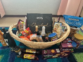 Find all your essential needs to create a lovely charcuterie board for entertaining friends and family. This basket is filled with an assortment of wine, sausage, pepperoni, olives, nuts, pretzels, crackers and other goodies.