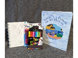 Bid on a signed copy of the book written by Sue Wyeth, "There's a Flood in My House." Plus enjoy a writer's journal, pens and pencils.