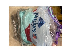 Basket filled with 2 packs of dog treats, a toy, poop bags, a flashlight, from Karen Elwood, of The Paw Path. Karen is a Dog walker and sitter.