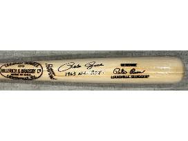 1Special limited edition Louisville Slugger Hillerich & Bradsby 1963 U1 model bat, the same make and model used by the "Hit King" Pete Rose during his rookie season with the Reds in 1963. Pete was named the National League Rooking of the Year for 1963, posting a batting average of .273, collecting 170 hits, with 25 doubles and 41 runs batted in. Pete has added the inscription for this amazing award that started his career. Each bat is hand numbered and limited to only 63.
