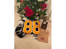 Signed Jersey (XL), signed "DP88" Davids own logo hat, signed All Star 2019 hat, Box off signed trading cards, signed Pastrnak Bobblehead, 200:- gift card at TABLE north end, 2 x tickets to the game 03/09/23 Bruins vs Edmonton Oilers
