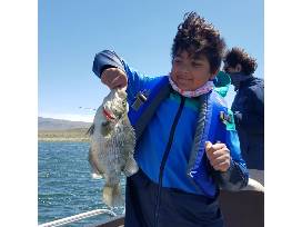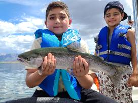 Treat yourself plus one other person to a guided fishing trip on Crowley Lake aboard our spacious bay boat. 1/2 day AM or PM trip - 7:00 AM or 2:00 PM departure, trip duration is 5 hours. Get to experience what the lake has to offer, utilizing different techniques. Great action in a calm setting in the mornings and most afternoons. Crowley Lake is the pinnacle of Eastern Sierra trout fishing, where you can catch big rainbow, brown and cutthroat trout (and Sacramento Perch), all in the same day. Let us show you what the lake has to offer. We provide professional, enthusiastic help to put anglers of all skill levels and ages on fish. Satisfaction on your trip is our top priority.