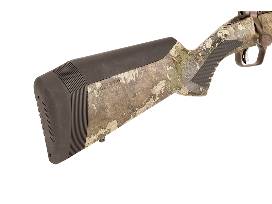 The biggest bulls. The longest shots. With the new Savage 110 High Country, they're all within your reach. The rifle is built to maximize accuracy with a spiral-fluted barrel and bolt, as well as the Model 110 action secured three-dimensionally along its entire length within the AccuStock™ internal chassis. The AccuFit™ system lets hunters customize length-of-pull and comb height of the TrueTimber Strata synthetic stock. Plus, the user-adjustable AccuTrigger™ offers a crisp, clean pull critical for making precise shots at extreme distances. The Cerakote finish on the barrel and receiver protects against corrosion and heat to withstand the toughest terrain and weather conditions.