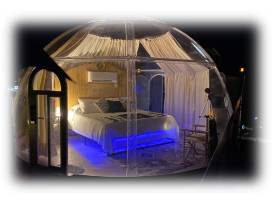 A one-night stay in theStardome at the Retreat on the Hill near Lake LBJ. At the very top of our Glampominium - The Stardome Suite. Perched 101 feet over Horseshoe Bay on a huge private deck with incredible views of the sunset and night sky, a clear dome to sleep under the stars at night! The Stardome suite has a private bath, indoor/outdoor shower and an outdoor star-soaking tub. The suite includes a mini frig, microwave, coffee maker and 5-billion star view!