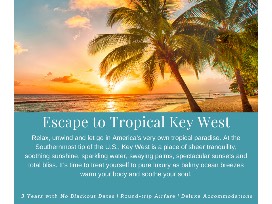 Relax, unwind and let go in America's very own tropical paradise. At the Southernmost tip of the U.S., Key West is a place of sheer tranquility, soothing sunshine, sparkling water, swaying palms, spectacular sunsets and total bliss. It's time to treat yourself to 4 days and 3 nights of pure luxury as balmy ocean breezes warm your body and soothe your soul.