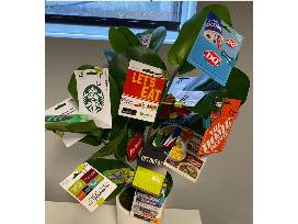 Money doesnÕt grow on trees, but gift cards grew on this one! A variety of gift cards displayed on an adorable artificial decorative plant. Perfect assortment to have on hand when you need a last minute gift. Or enjoy spending them all on yourself! Includes multiple restaurants, coffee, ice cream, movies, Netflix, shopping, and more!