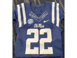Authentic Ole Miss "22" Navy jersey signed by Ole Miss Head Coach Lane Kiffin