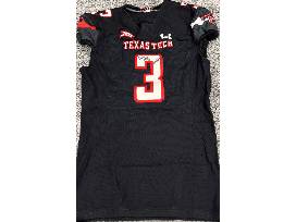 Authentic Black "#3" Texas Tech jersey signed by head coach Joey McGuire