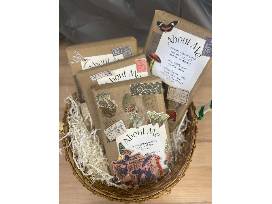 The Spiral Bookcase has put together a fun twist on reading: Four (4) new and used wrapped general fiction books, decorated with vintage ephemera and nameplates with brief descriptions of each book.
