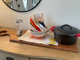 Beautiful 3 foot charcuterie board, cast iron Dutch