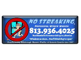 No Streaking Professional Window Washing is based in Tampa, FL, but all locations are locally owned and operated. Owners Nicole Wylie & Toni Willcox are dedicated to becoming the #1 window cleaning company in the country. We specialize in 1, 2, & 3 story commercial and residential window cleaning.